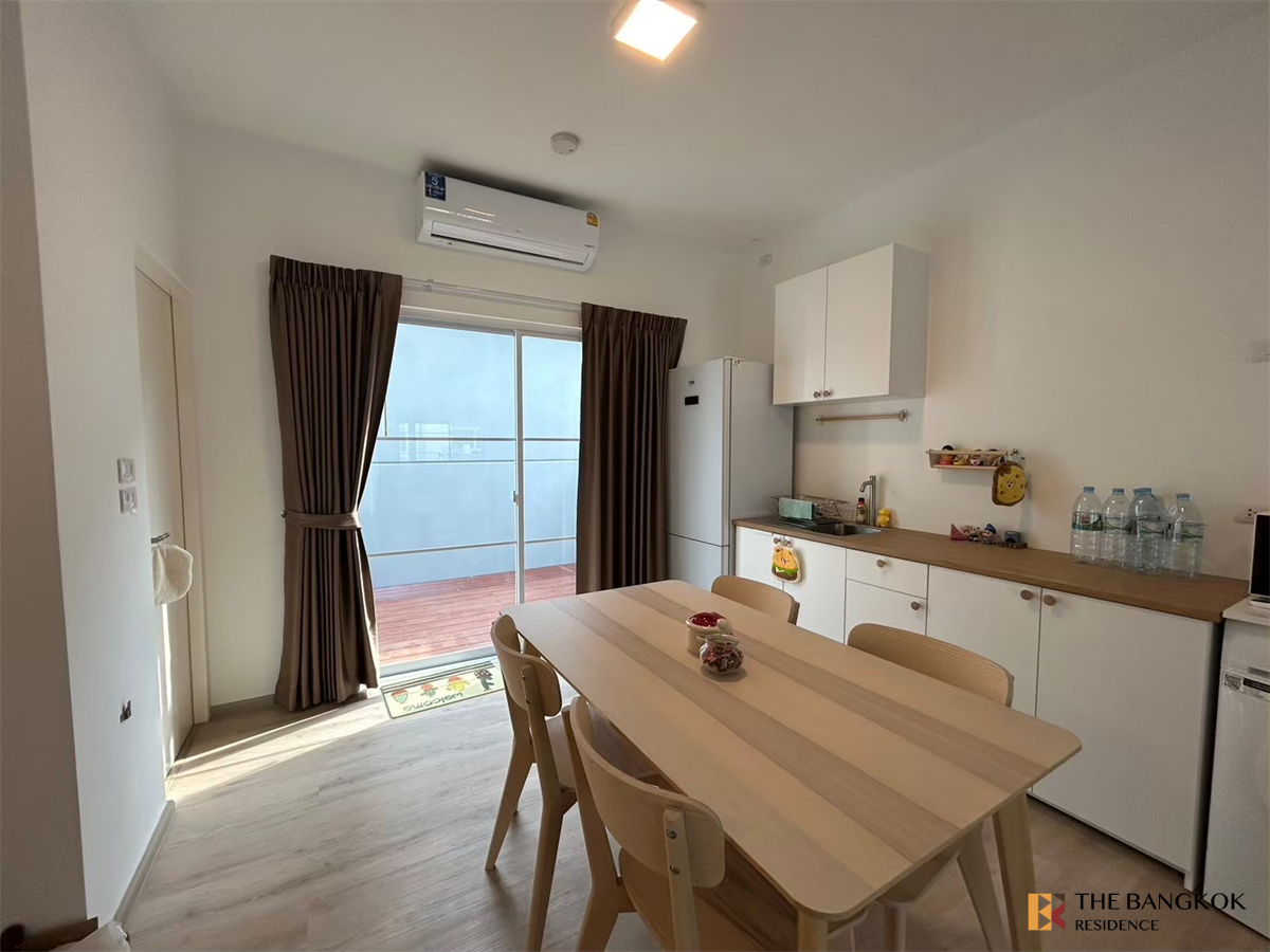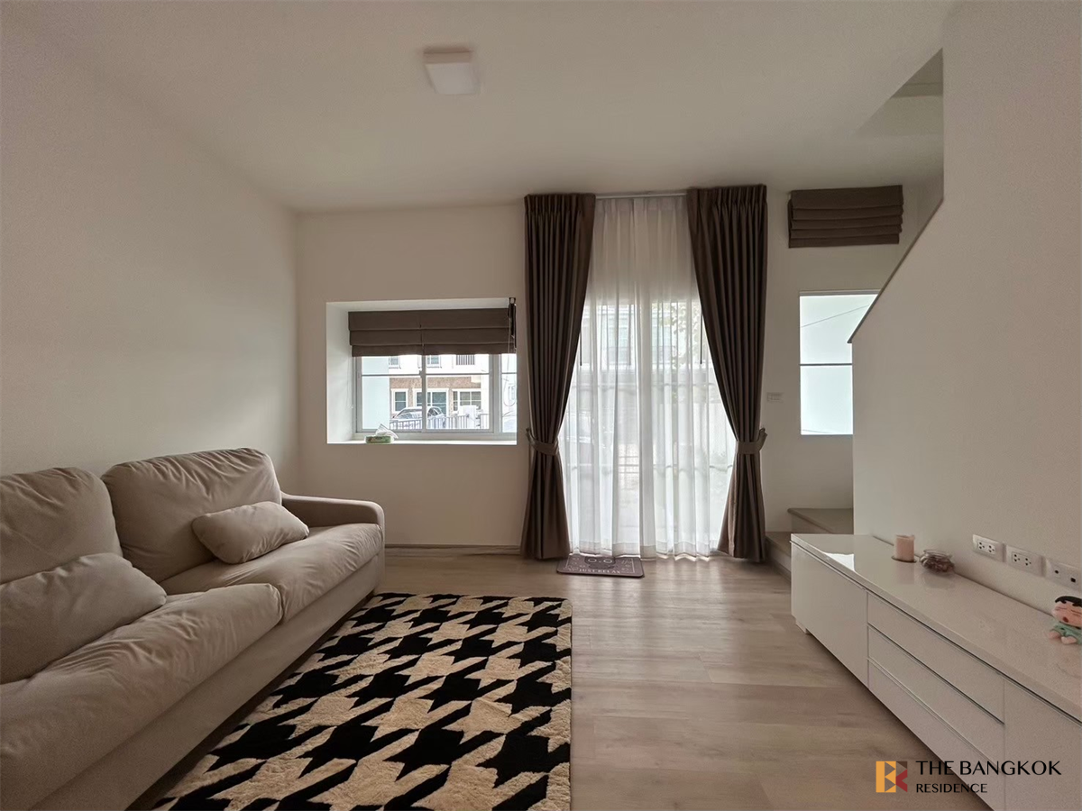 บ้านทาวน์โฮม (ตกแต่งขาว-ไม้ ทั้งหลัง) สไตล์มินิมอล-หลังริม หมู่บ้าน Villaggio 2 ศรีนครินทร์-บางนา (ใกล้เมกะบางนาเพียง 5 นาที) #พร้อมเข้าอยู่ 2 ห้องนอน(บน) ห้องน้ำในตัว Master Bedroom มีเตียง + ที่นอน ห้องนอนเล็กมีตู้เสื้อผ้า Built in 1 ห้องน้ำด้านล่าง จอดรถได้ 1 คัน (พื้นที่ 89 ตรม.) ค่าเช่า 27,000 บาท/เดือน (เพิ่ม/ลดเฟอร์นิเจอร์ ต่อรองได้) (รวมส่วนกลางแล้ว) ครัวและตู้ครัว เครื่องใช้ไฟฟ้า ตู้เย็น เครื่องซักผ้า (1)ทำน้ำอุ่น ไมโครเวฟ หลังบ้านตกแต่งใหม่ทำพื้นไม้ + หลังคาใส อนุญาตให้เลี้ยงสัตว์ได้ (พิจารณาก่อนเข้าอยู่)