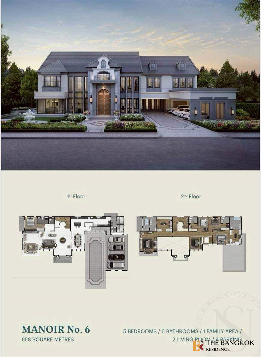 5 спален / 6 ванных комнат / 1 семейная зона / 2 гостиные / 4 парковки