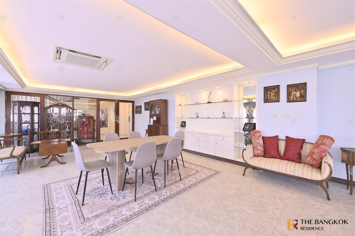 面积:380平方米。 3 间卧室 3.5间浴室 1间佣人房 1间餐厅 1间厨房 1间大客厅 1间洗衣房 中环 - 24小时保安 - 电梯 - 游泳池 附近地区 - BTS Ploenchit 200 米 - 中央大使馆 850m - 奇隆中心1.2公里 - 四季大厦 1.5Km - 美国大使馆 1.5Km 📍巴吞旺县隆披尼街道无线路Soi Nai Lert