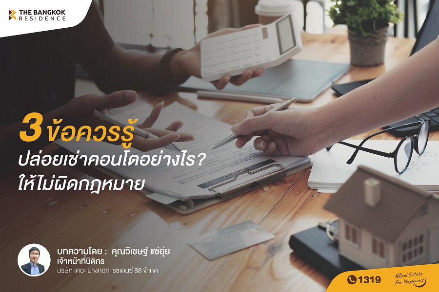 แต่ก่อนที่จะคิดปล่อยเช่าห้องชุดคอนโดมิเนียม เพื่อสร้างกำไรหรือรายได้ สิ่งสำคัญที่สุด คือคุณต้องศึกษาเกี่ยวกับข้อกฎหมายและผลที่ตามมาให้ดีเสียก่อน วันนี้ผมจึงขออาสาให้คำปรึกษาทางด้าน "กฎหมายเกี่ยวกับการปล่อยเช่าห้องชุดคอนโดมิเนียม" โดยมีประเด็นหลักๆ อยู่ 3 ประเด็นสำคัญ ดังนี้ครับ