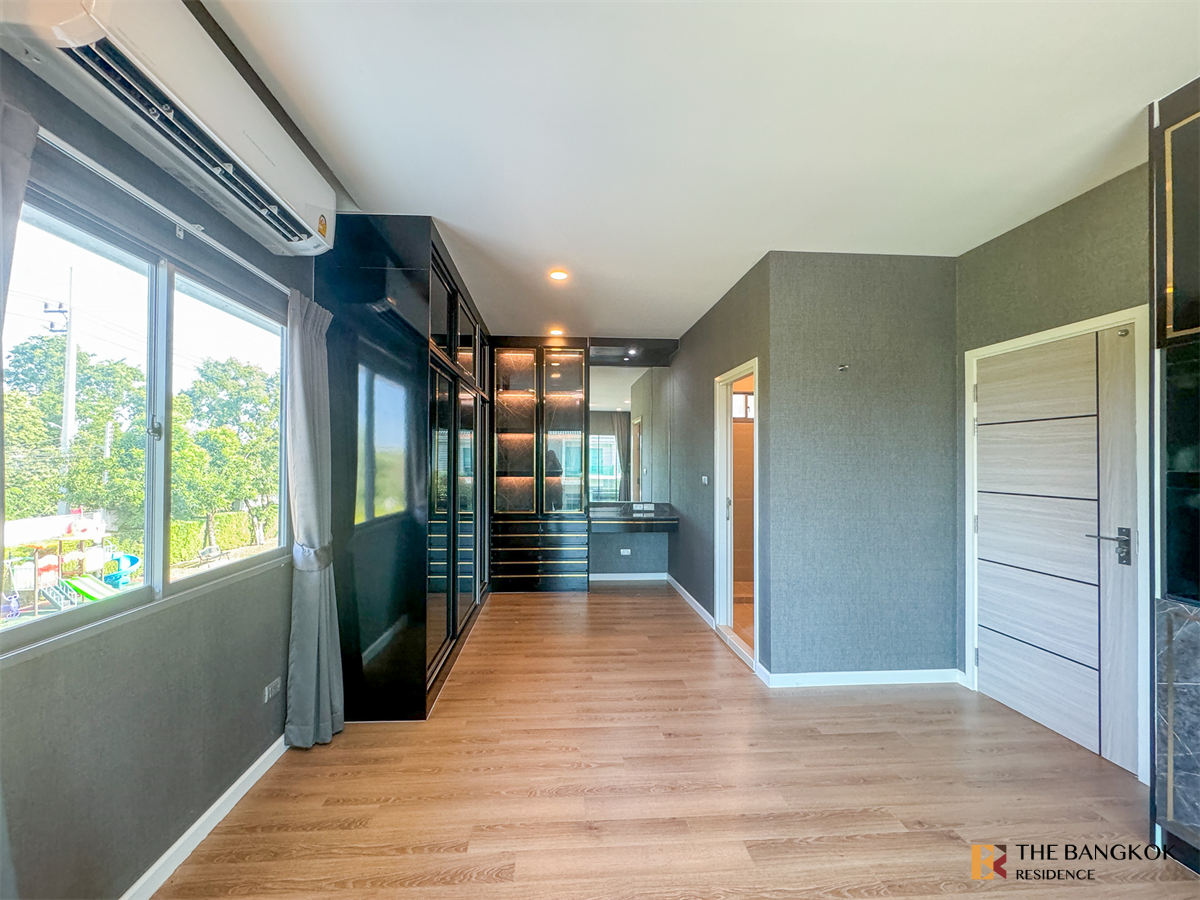 Large detached house in Perfect Place Village, Rangsit-Bang Phun Expressway. Beautiful corner unit with full extension.
