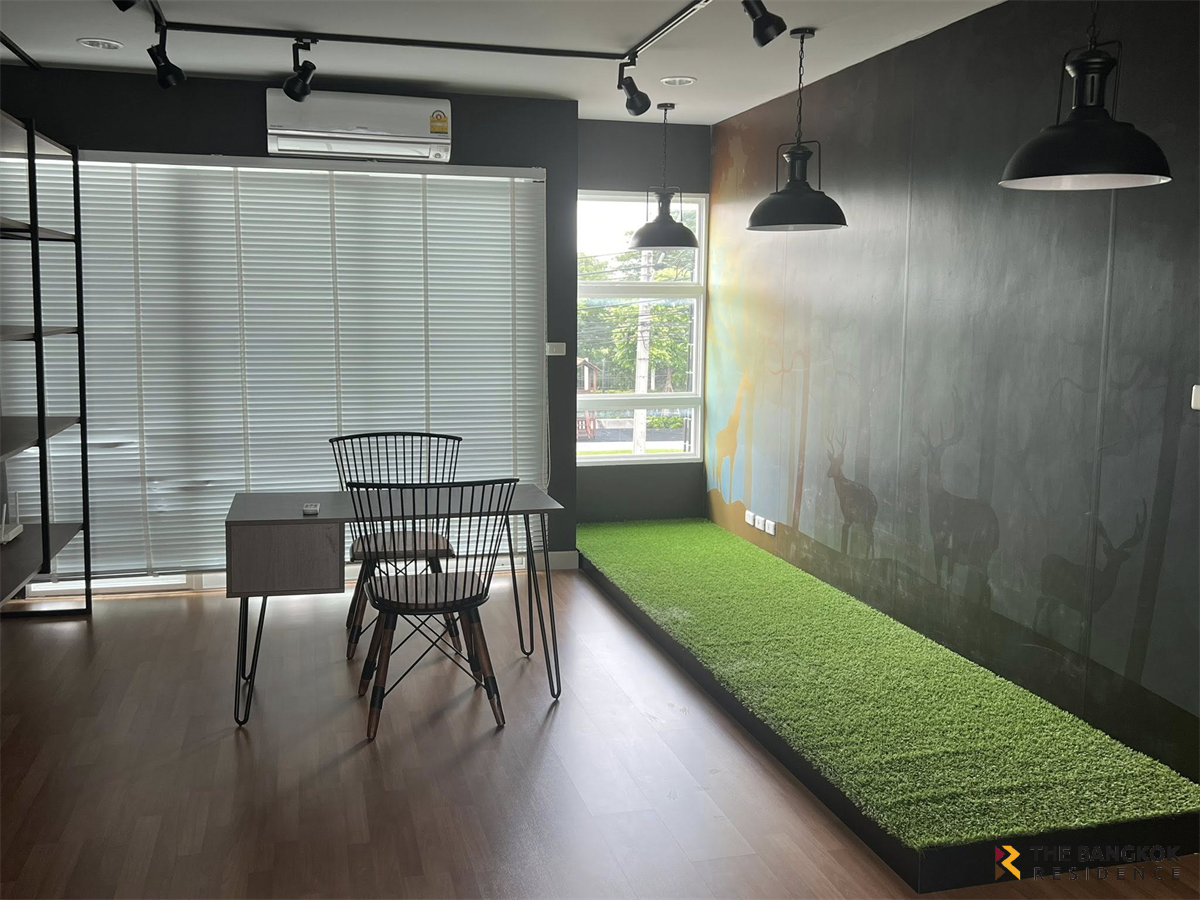 For rent: Semi-detached home office in prime location at Chuan Chuen Modus Village, Vibhavadi. Rent reduced from 150,000 baht to 120,000 baht. Selling price for 2 houses: 30 million baht. Located on the main road inbound Vibhavadi, on the same side as Jae Leng, Don Mueang. Measuring 100 sq m, the house offers 500 sq m of usable space, 3 floors, 6 bedrooms, 8 bathrooms, and a work room. There are 9 air conditioners, fully furnished, and storage space. Opposite is a garden with convenient parking. Excellent location near Don Mueang Airport, very convenient to travel. Suitable for an office or living. 📍Coordinates: 13.891283140542386, 100.5859789175319