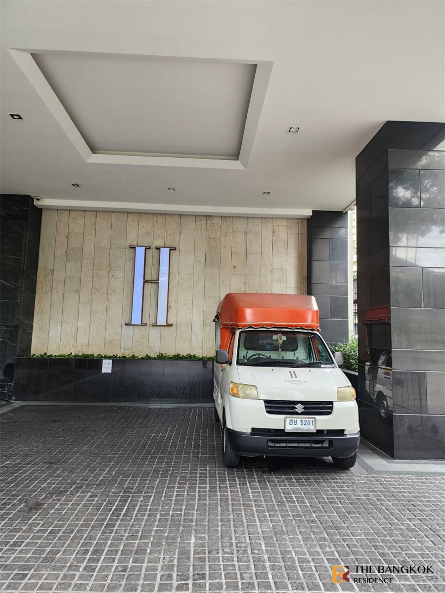 Facilities at H Sukhumvit 43 include elevator, parking, 24-hours security, cctv, swimming pool, sauna, gym, wi-fi.