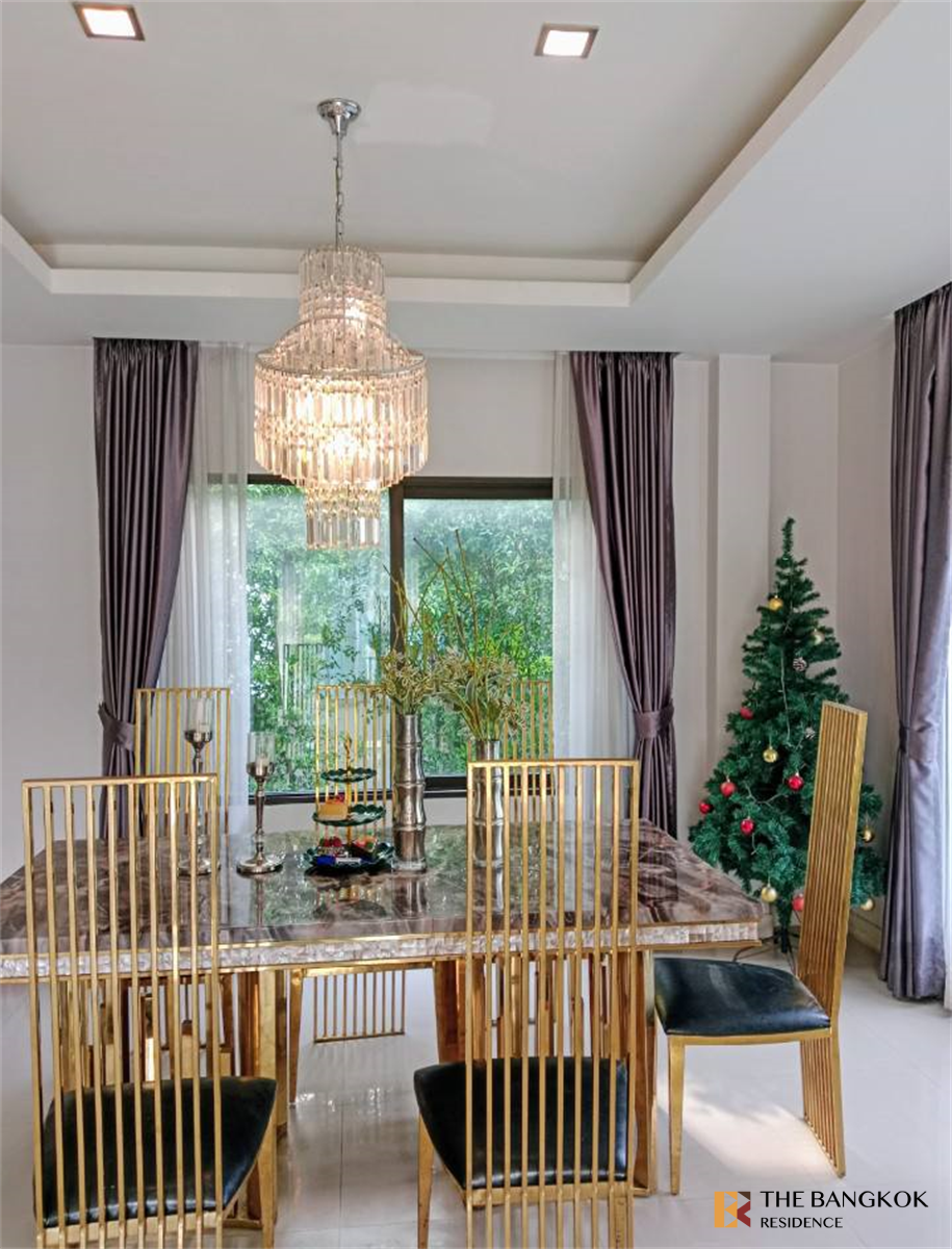 ✨✨This month's reservation price includes common areas, fitness center, and swimming pool. There are only 4 units in the alley, so it's very private. 🧡Centro Ramintra-Chatuchak. The house overlooks the private swimming pool. 🔸Size 60 square wah, 4 bedrooms, 3 bathrooms 🎉Built-in stainless steel furniture, real stone countertops, near Lertlah International School, Fashion Island, next to the expressway, Chatuchak. Convenient transportation, through Sukhapiban 5, 6-seat stainless steel dining table, TV, living room, microwave, refrigerator, electric stove, real stone island, 3 air conditioners, 3 beds, 1 wardrobe, 2 genuine crystal chandeliers 📌 Install a 4-way built-in air conditioner in the living room 📌 There is a wardrobe in the master bedroom 📌 There is a bed in the 2nd bedroom and 📌 The 3rd bedroom has an air conditioner and an additional bed. There is an empty room on the 1st floor that can be used as a bedroom, an office, or a storage room. 👉The furniture seen in the picture is as shown in the picture. 🔹Ready to move in