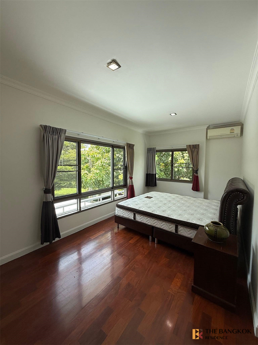 Single house, Masterpiece Rama 9 Village (village next to Stamford International University), beautifully decorated house, lake view, fully furnished, ready to move in ✨ Very good atmosphere, like coming to relax all the time 🍃 🏠Details ✔️ Single house, 3 bedrooms, 4 bathrooms ✔️ Very beautiful lake view, like a vacation home ✔️ Living room, kitchen, dining room ✔️ Master bedroom with walk-in closet ✔️ Master bathroom with bathtub ✔️ Kitchen, range hood ✔️ Maid's room, laundry ✔️ 6 air conditioners ✔️ Clubhouse, fitness, swimming pool ✔️ Lake, public park ✔️ 24-hour security ✔️ Parking for 2-4 cars 🚘Nearby places🚘 ✔️ Next to Stamford International University ✔️ Near Airport link Hua Mak ✔️ Near the expressway, motorway, Phatthanakan ✔️ Near Suvarnabhumi Airport ✔️ Samitivej Srinakarin Hospital