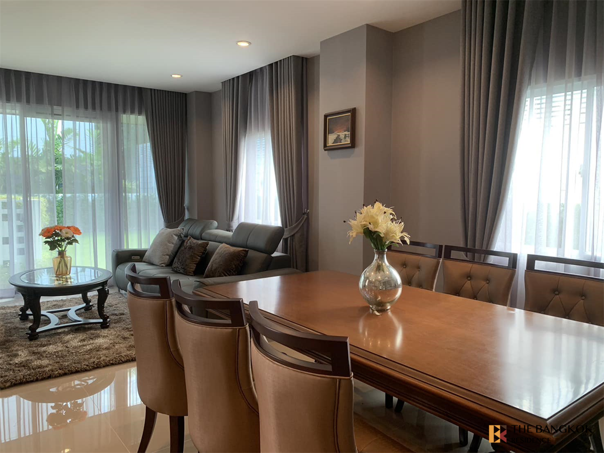 Large Fully Furnished House for Rent – Krungthep Kreetha Area 🏡 Nirvana ABSOLUTE Krungthep Kreetha 📐 Usable Area: 329 sq.m. 🌳 Land Size: 85 sq.wah 🛏 4 Bedrooms | 🚿 5 Bathrooms 🧹 1 Maid’s Room 🛋 1 Living Room 🍽 1 Dining Room 💼 1 Home Office 🛌 1 Family / Relaxing Room 🔄 1 Multi-purpose Room 🚗 Parking for 3 Cars ✨ Brand new furniture throughout the house (including maid’s room) ❄️ 9 Air-conditioners 🚿 1 Water Heater & 4 Water Warmers 🔌 Appliances included: Refrigerator Washing Machine Electric Stove Microwave 📍 Nearby Places: 4 km to Brighton College International School 6.5 km to Wellington College International Bangkok 19 km to Suvarnabhumi Airport 11 km to Samitivej Srinakarin Hospital 8 km to The Mall Bangkapi 💰 Rental Price: 250,000 THB / month 🔒 Security Deposit: 2 months 💵 Advance Rent: 1 month 📄 Minimum lease: 1 year