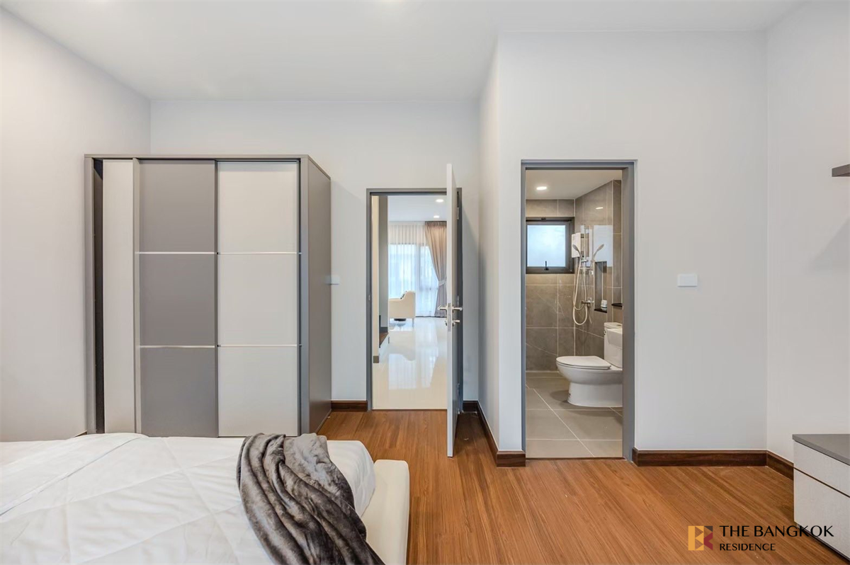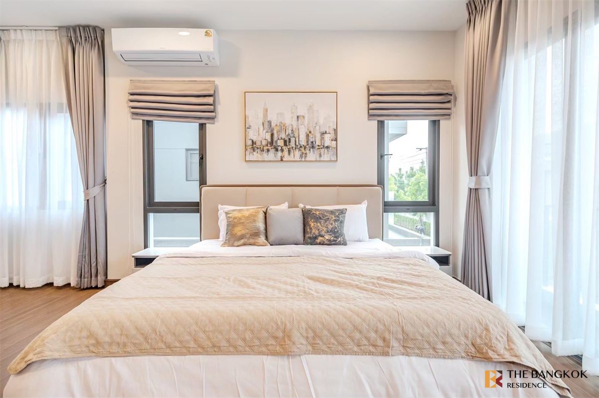 "The City Bangna" (emarald) house, 78 sq.wa, 313 sqm, 4 bedrooms, 5 bathrooms, 1 living room, 1 Thai kitchen, 4 parking spaces.