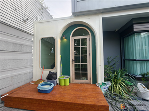 Single house, project "The City Sukhumvit - On Nut", new house, completed construction, never occupied, located in the north. Private corner plot There is a garden area in front and on the side of the house. Usable area 252 square meters, land size 68.80 square meters, house style 4 bedrooms, 5 bathrooms (all bedrooms have en suite bathrooms) with a living area on the upper floor. Indoor parking for 3 cars