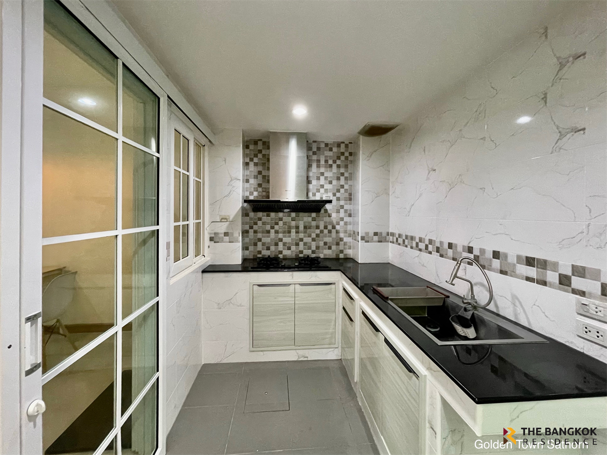 美丽的联排别墅,条件良好,Golden Town 2 Sathorn 项目,位于 Sathorn-Kanlapaphruek 地区,靠近 BTS Wutthakat 站。 👉特价仅360万(56,xxx/平方米)👈 ❌原价430万起❌ 参考代码:T12309070062 额外功能是优越的,因为它提供了多达 3 间卧室和 2 间浴室,并添加了特殊功能,例如首次在 2 层联排别墅中设有佛房。底楼设有多功能室,可改造成各种房间。根据需要,特别选择 GOLDEN KITCHEN,泰式厨房创新。 EXTRA SPEC比较特别,提供相当于单体房屋的材料标准。强调质量和完美设计,例如 UPVC 门窗,各处均配有筒灯。二楼天花板近3米高,通风舒适。通风良好 配套设施:居住方面,项目周边一应俱全。包括符合标准的百货商店、学校和医院,如乐购莲花 (Tesco Lotus)、万客隆 (Makro)、HomePro、Big C、The Mall Tha Phra、不列颠哥伦比亚国际学校 (British Columbia International School)。圣母升天修道院学校、是隆、帕亚泰第三医院