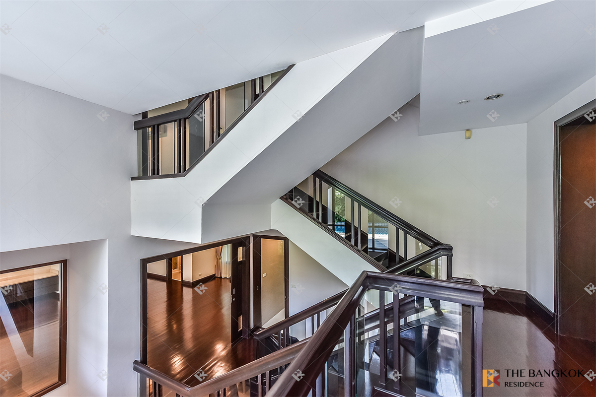 房屋详细信息(单位规格) • 1间客厅,天花板高,开放且通风。 • 1间大餐厅 • 4间大卧室 • 1间家庭房/办公室 • 2间厨房 • 5间浴室 • 客用浴室(盥洗室)、储藏室、更衣室(衣帽间)、女仆房和洗衣房。 总使用面积:675平方米 – 内部面积455平方米 – 外部面积220平方米 适合租户群体: • 仅限夫妻或核心家庭。 租赁条件: • 最短合同期为2 年。 • 2个月保证金+1个月预付租金。 家居设施: • 可停放 3 辆车的停车场,配有遥控门。 • 2 种类型的厨房(泰式厨房和欧式厨房),配有额外的储藏室。 • 私人无边泳池,配有按摩浴缸和瀑布。 位于主卧室的阳台上。 • 主浴室设有独立的浴缸和淋浴。 双梳妆台和独立更衣区