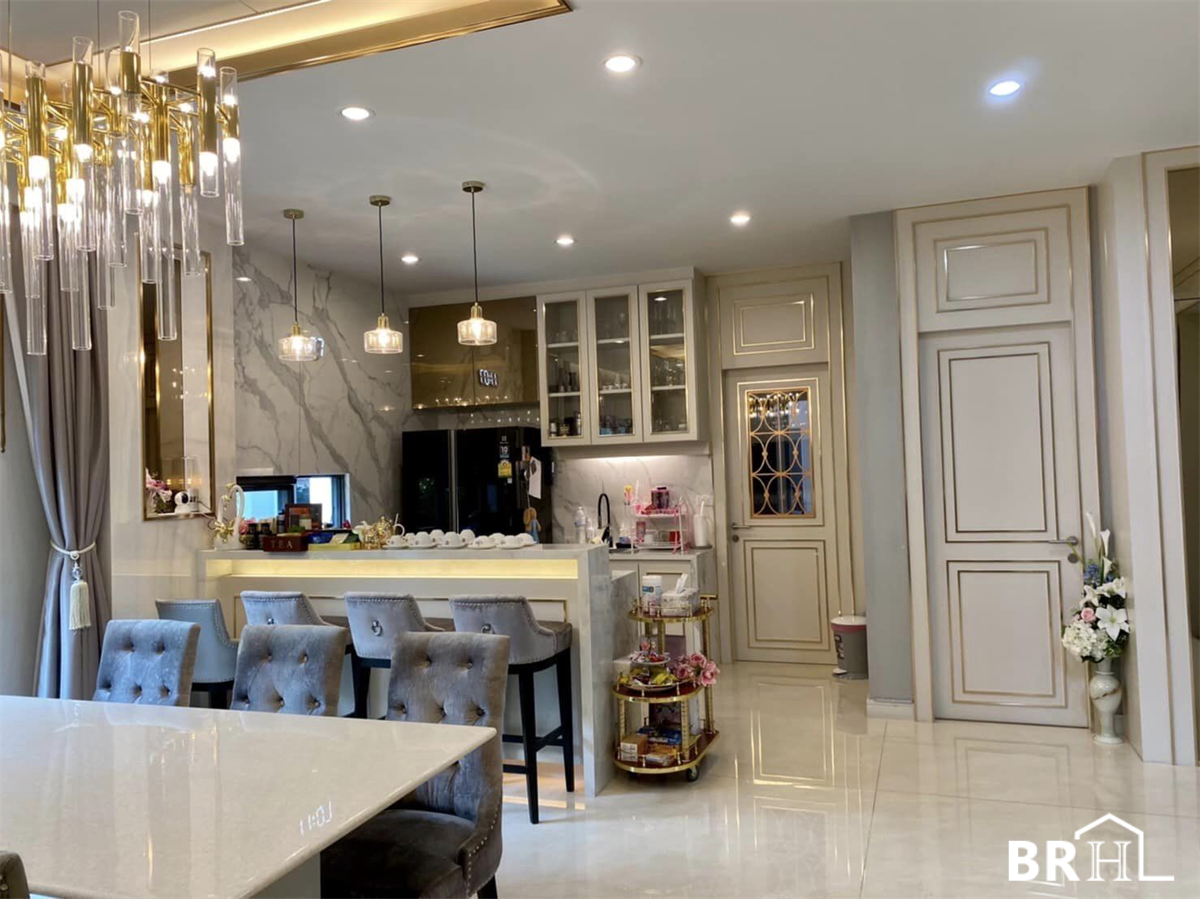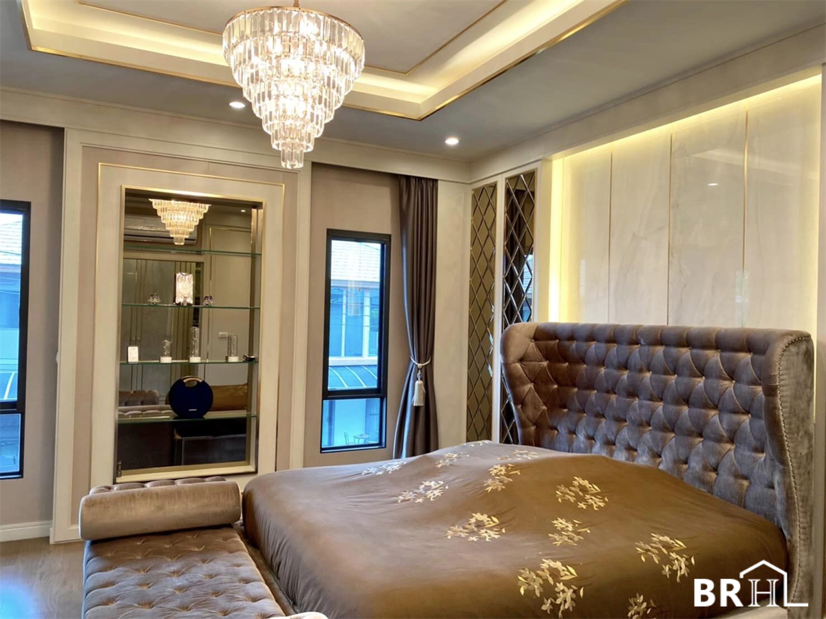 Отдельный дом Burasiri Phatthanakan, оформленный в современном роскошном стиле с использованием импортного мрамора. Полезная площадь 399 кв.м., 4 спальни, 5 ванных комнат, 1 кабинет, молельная комната, комната для прислуги, парковка на 4 машины, площадь участка 150 кв.м.