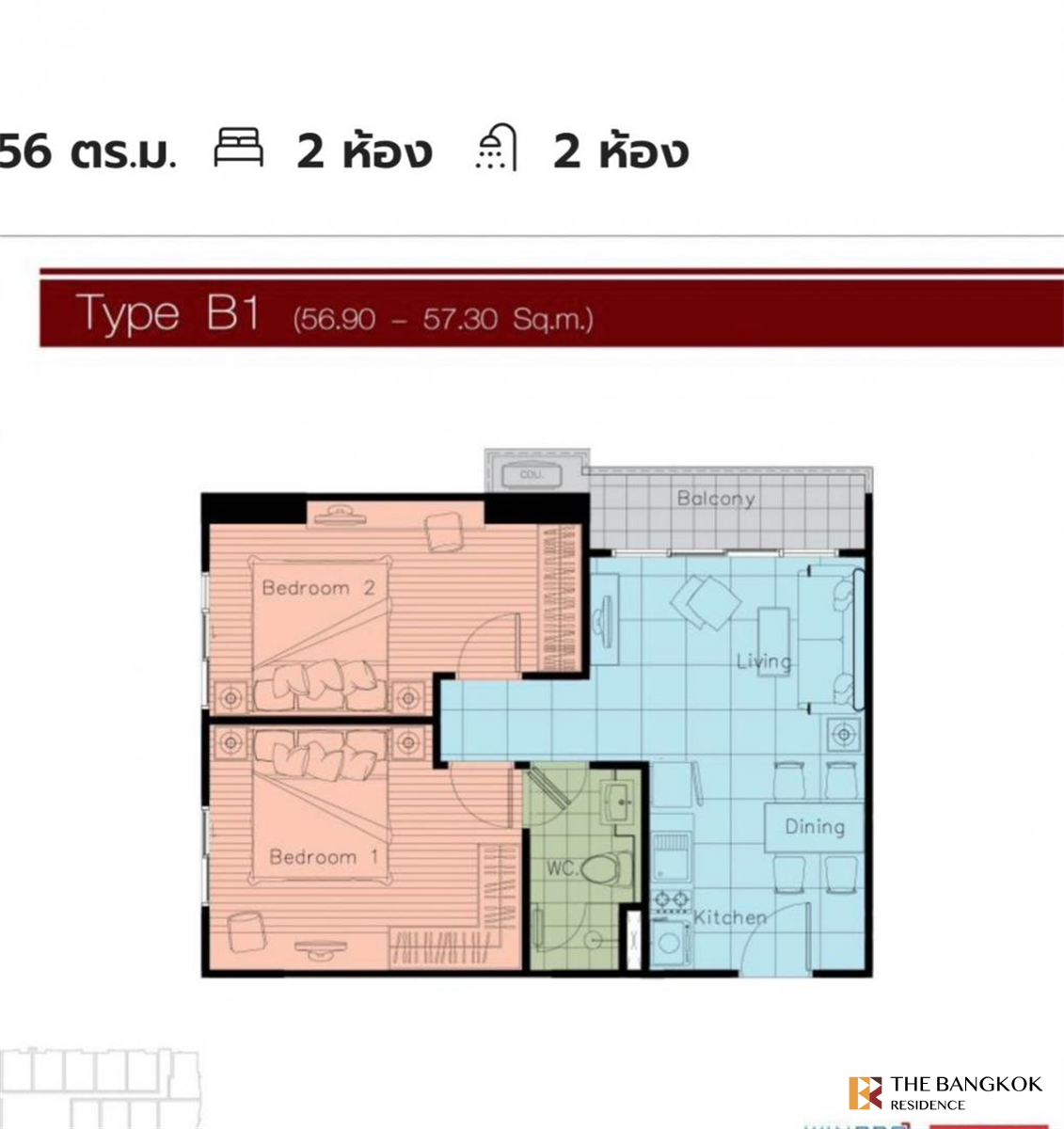 Продажа/аренда квартиры, метка Airport Link Ratchada, 19 этаж, угловая комната, 56,72 кв.м., 2 спальни, 3 кондиционера, диван, обеденный стол, кровать, встроенный кухонный гарнитур, новая комната, старый инвентарь, хорошее состояние, рядом с метро, хороший вид на 2 стороны, вид на Рама 9, из спальни вид на Чатуратит Роуд.