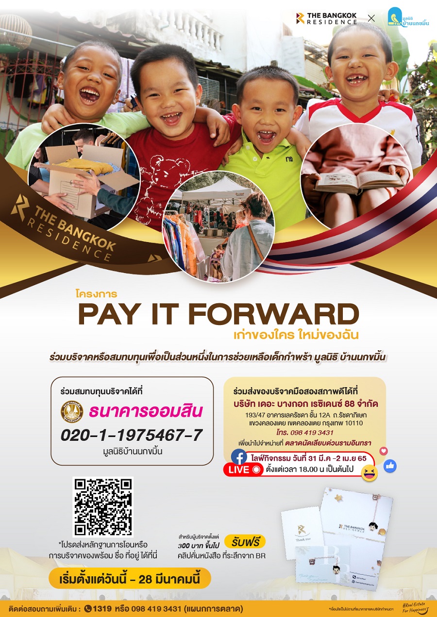 The Bangkok Residence 88 ได้จัดทำโครงการ “PAY IT FORWARD” เก่าของใคร ใหม่ของฉัน