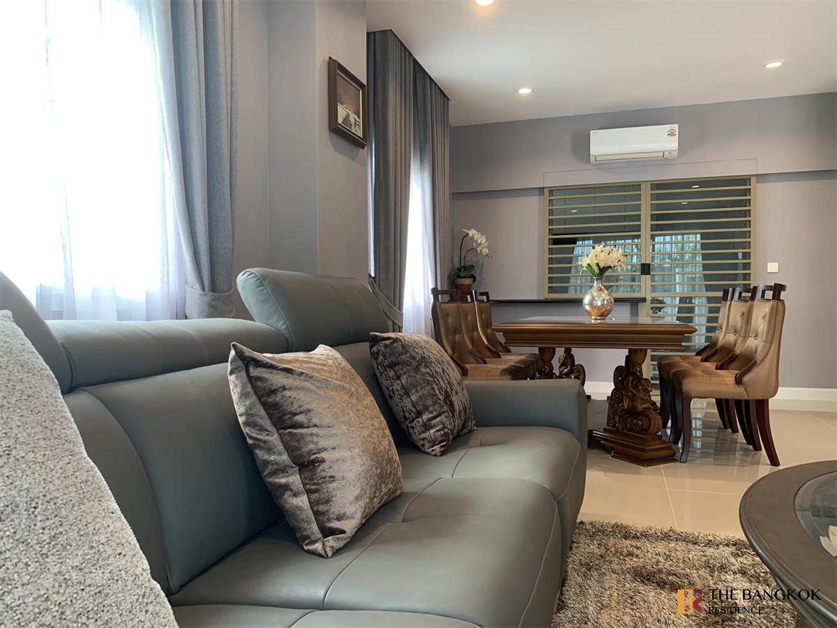 บ้านหลังใหญ่แต่งครบย่านกรุงเทพกรีฑา พื้นที่ใช้สอย 329 ตร.ม. เนื่อที่ดิน 85 ตร.ว. 4 ห้องนอน 5 ห้องน้ำ 1 ห้องแม่บ้าน 1 ห้องรับแขก 1ห้องทานอาหาร 1 ห้องทำงาน 1 ห้องพักผ่อน 1 ห้องเอนกประสงค์ จอดรถ 3 คัน เฟอร์นิเจอร์ใหม่หมดครบทั้งหลัง (ครบยันห้องแม่บ้าน) แอร์ 9 เครื่อง 1 เครื่องทำน้ำร้อน 4 เครื่องทำน้ำอุ่น 1 ตู้เย็น 1 เครื่องซักผ้า เตาไฟฟ้า ไมโครเวฟ พิกัด : [https://maps.app.goo.gl/KMDV7FvZTub4Wt9C6](https://maps.app.goo.gl/KMDV7FvZTub4Wt9C6...) (โครงการ : Nirvana ABSOLUTE Krungthep Kreetha ) สถานที่ใกล้เคียง 4 กม. ถึงโรงเรียนนานาชาติไบรท์ตัน คอลเลจ 6.5 กม. ถึงโรงเรียนนานาชาติเวลลิงตัน 19 กม. ถึงสนามบินสุวรรณภูมิ 11 กม. ถึง รพ.สมิติเวช ศรีนครินทร์ 8 กม. ถึงเดอะมอลล์บางกะปิ : ค่าเช่า 250,000 บาท/เดือน ประกัน 2 เดือน ล่วงหน้า 1 เดือน