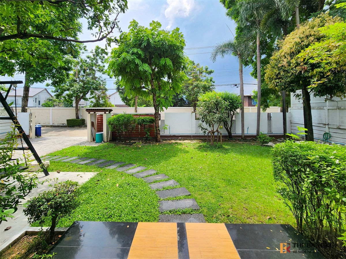 สนามหญ้าหน้าบ้าน บ่อปลา แปลงผักสวนครัวหลังบ้าน มีระเบียง rooftop เหมาะสำหรับพักผ่อน อากาศดี ต้นไม้เยอะ สังคมน่าอยู่ รักษาความปลอดภัยดีเลิศ