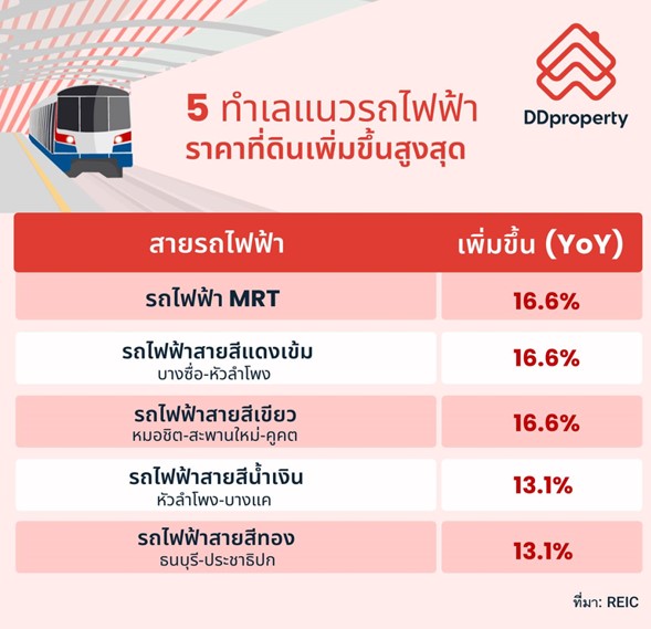 🚇 เส้นทางรถไฟฟ้า 5 อันดับแรกที่มีอัตราการขยายตัวของราคาที่ดินเพิ่มขึ้นสูงสุด