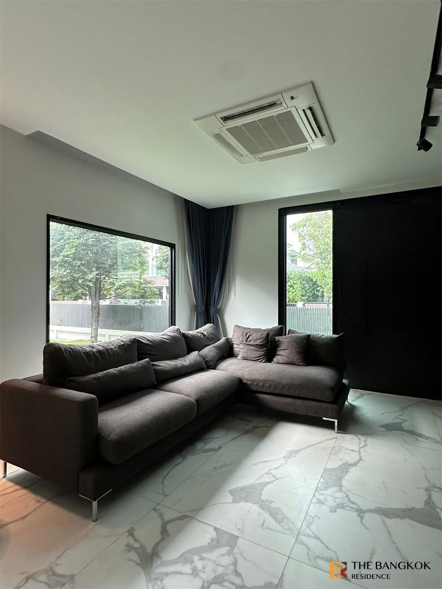 全新的房子以现代风格装饰。 从来没有一个住户家具齐全、准备搬进去。 整个房子都有空调。家具齐全,家具齐全,装修豪华,电视65寸,可拎包入住。 🏡面积:土地63.7平方华,使用面积222平方米,3间卧室,2间客厅,1间办公室,4间浴室,1间佣人房,1间佣人浴室。 🚗 可停放2辆车 🏫 靠近布莱顿国际学校和惠灵顿学院 🏥 三美泰医院 🛍️ 市场、涅盘门廊、步行道 ⛳️ 靠近 Unisco 高尔夫球场和 Krungthep Kreetha 高尔夫球场 ✅ 村中心:游泳池、大花园、健身室 ❌ 不允许携带任何种类的宠物。 ❌ 禁止吸烟。 💰 租金价格150,000泰铢/月 (长期合同价格可协商) 🔒最短合约1年(3个月定金+1个月预付款)。此价格包括公共区域和花园维护费。