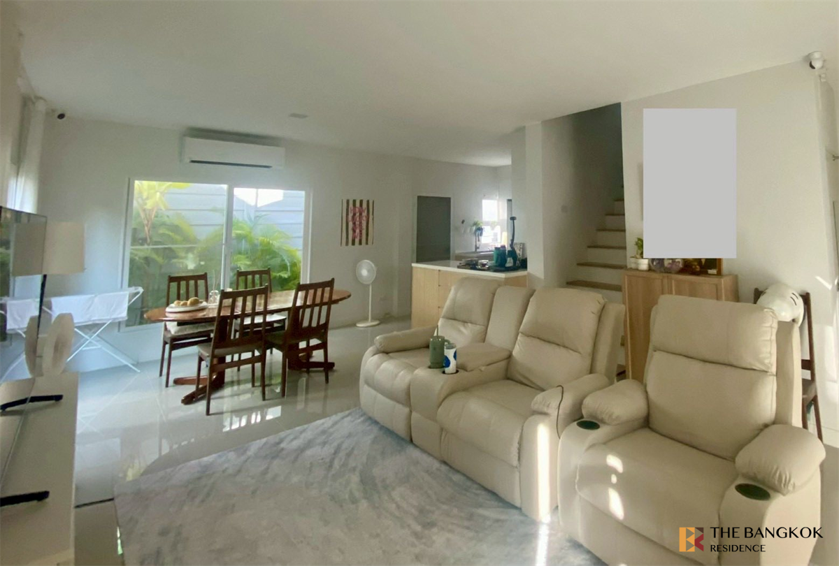 🌟 半独立式住宅出租 Grande Pleno Mega Bangna – Janette 风格 🌟 漂亮的房子,新的条件,准备搬进去。位于 Mega Bangna 区非常好的位置。 📍房子位于项目主干道上,出行方便,私密。 :土地面积:36.20 平方米。 :使用面积:145平方米。 :房屋风格:珍妮特 : 3 间卧室 | 3 间浴室 | 2个停车位(已完成在房子前面添加车库屋顶 :宽敞、通风的空间,具有完善的可用功能。 🏡 房子的亮点 : 房子在主干道上,进出方便。 :宽阔的正面,接收良好的风,完成房屋前面的屋顶。 : 房子周围还有很多空间。 :适合家庭或在 Bangna-Srinakarin 地区工作的人 : 安静的项目 有隐私 :靠近 Mega Bangna、宜家、许多国际学校、素万那普机场。 ⚡️电器/家具 :门安装电动开关功能(世界各地都可以通过APP操作,只要有网络) :屋外有 5 个闭路电视摄像机,屋内有 2 个。您可以实时查看它们。摄像机记录了大约3个月。 :在一楼和二楼安装气压系统,帮助净化空气,为房屋增添良好的空气。 :家庭自动化系统(开灯和关灯、嘎嘎作响的门、自动植物浇水系统、数字进屋门) : 2台55英寸电视 :2个热水器 : 4 台空调 :内置厨房,配有 3 个燃烧器的电炉和抽油烟机。 :洗衣机/烘干机尺寸 13/8 :3张躺椅沙发 : 2 张办公桌和工作椅 :床5英尺,床3.5英尺 : 餐桌配 4 张椅子 :冰箱尺寸 21 立方米。